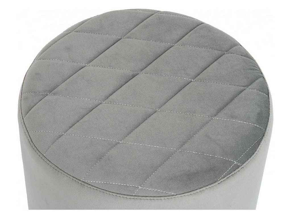Elegantní kulatá taburetka čalouněná jemnou sametovou látkou v šedém odstínu. Vrchní část sedáku je zdobena decentním prošíváním do kosočtverců, které dodává nábytku sofistikovaný vzhled. Díky kompaktním rozměrům je taburetka lehká, snadno přemístitelná a zároveň dostatečně stabilní pro každodenní použití.
