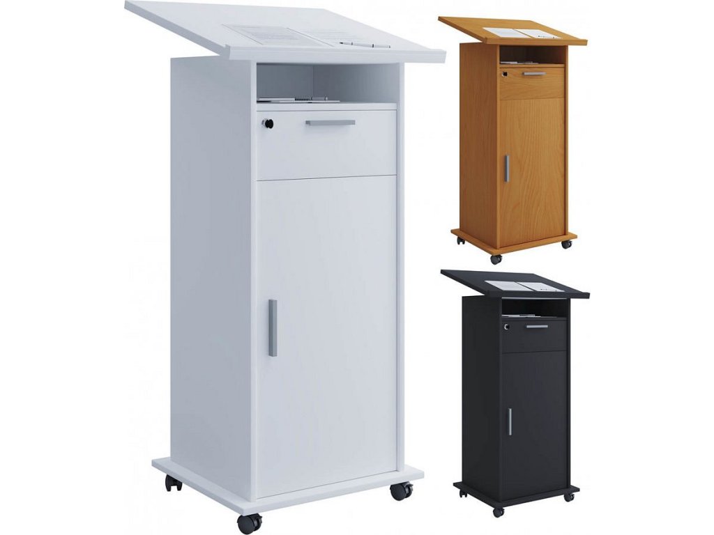 Pult Meeta se vyznačuje rozmanitými a uzamykatelnými úložnými možnostmi. Plynulá pojezdová kola zajišťují trvalou mobilitu. Zvláštním prvkem je výškové nastavení horní dřevěné desky, což umožňuje přizpůsobení stolu.