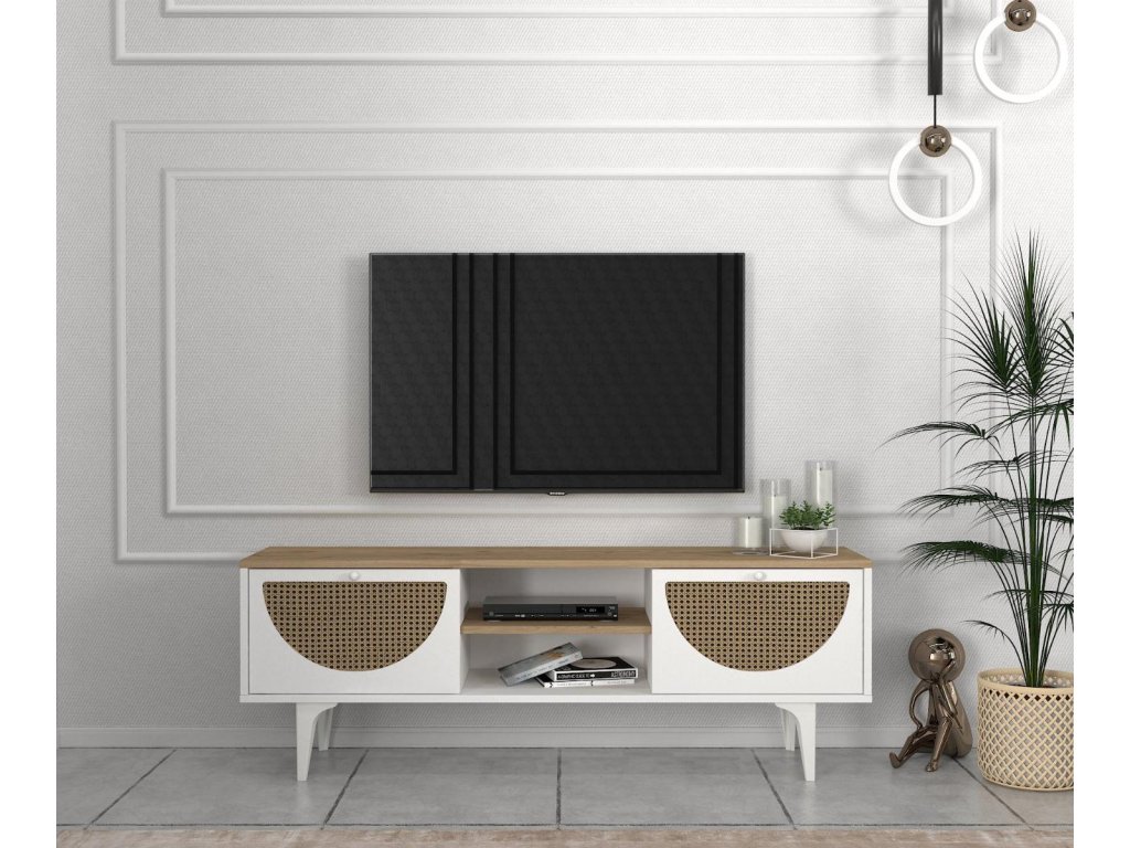 TV stolek je skvělou volbou pro každého, kdo hledá funkční a estetické řešení pro svůj obývací pokoj. Vyrobený z kvalitního LTD materiálu s tloušťkou 18 mm, zajišťuje pevnost a dlouhou životnost. Kombinace bílé a světle hnědé barvy dodává stolku moderní a příjemný vzhled, který se hodí do jakéhokoli interiéru.