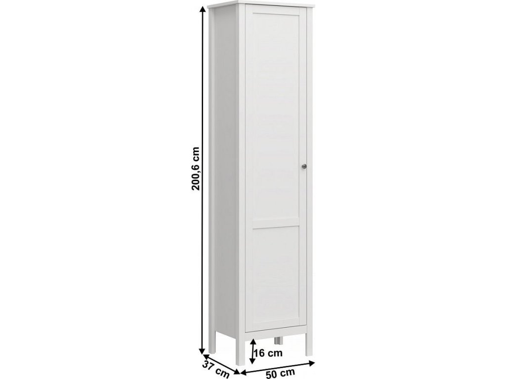 Materiál: DTD laminovaná/ABS hrany/MDF Barva: bílá Rozměry (ŠxHxV): 50x37x200,6 cm Tloušťka materiálu: 1,6 cm Výška nožiček: 16 cm Jednodveřový Policový MDF dvířka Dodávána v demontu