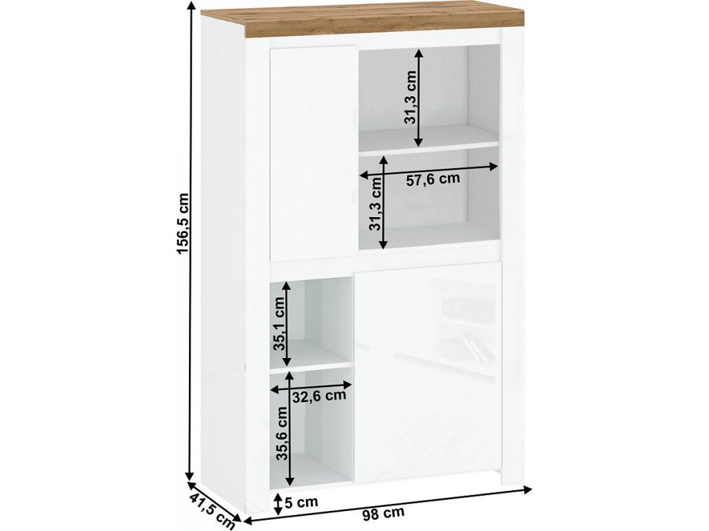 Rozměry vrchních polic (ŠxV): 57,6x31,3 cm