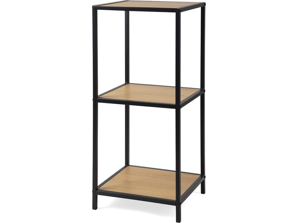 Moderní policový díl s minimalistickým designem. Tři praktické police v dekoru přírodního dřeva. Stabilní kovová konstrukce v černém provedení. Ideální pro ukládání knih, dekorací či drobných předmětů. Spojuje funkčnost, jednoduchost a industriální styl.