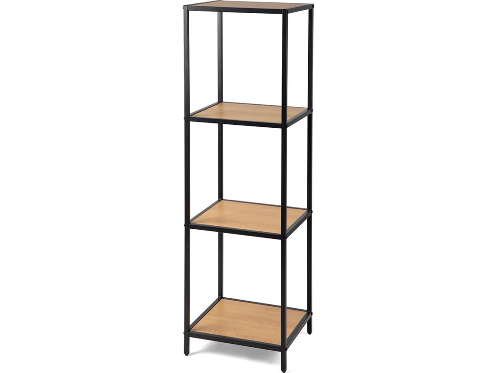 Moderní policový díl s minimalistickým designem. Čtyři praktické police v dekoru přírodního dřeva. Stabilní kovová konstrukce v černém provedení. Ideální pro ukládání knih, dekorací či drobných předmětů. Spojuje funkčnost, jednoduchost a industriální styl.