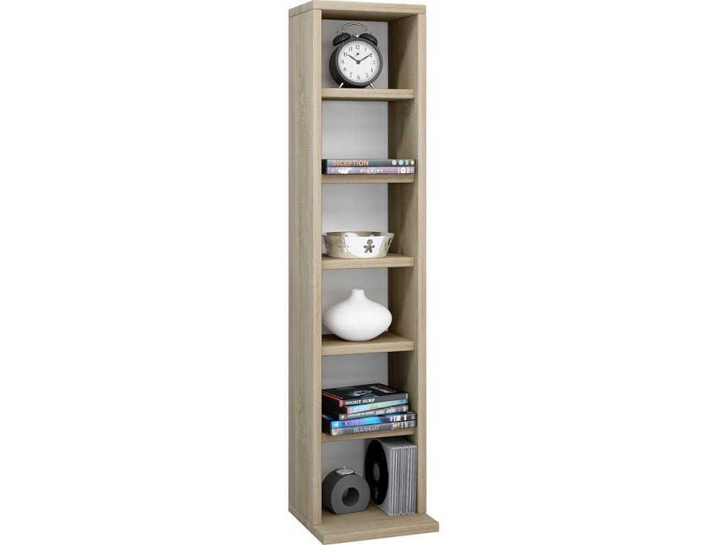 Úzký regál s 5 variabilními poličkami nabízí místo pro mnoho dekoračních i praktických věcí, především v něm ale uložíte až 102 CD, 36 DVD nebo 20 VHS. Prostor pak můžete dále zvětšovat díky tomu, že regály lze spojovat jednoduše k sobě (fixace na zadní straně).
