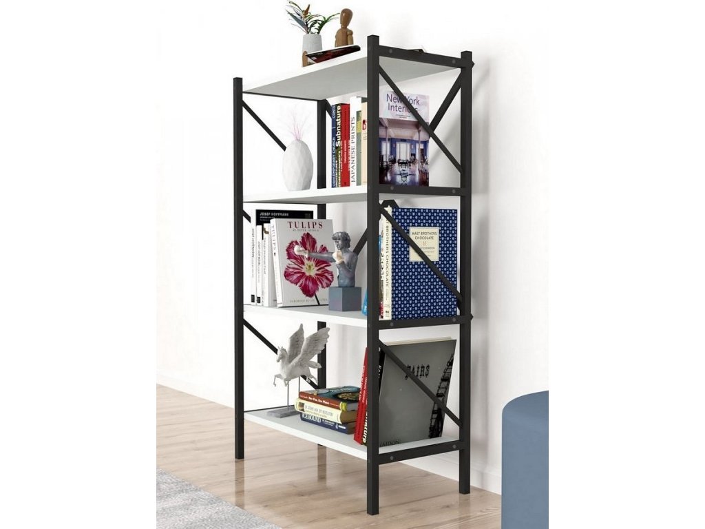 CASA 36006 Regál se čtyřmi policemi je z kovového rámu v matné černé barvě a police jsou vyrobeny z kvalitní LTD desky. Barevné provedení polic je bílá. Dodáváme v demontovaném stavu.