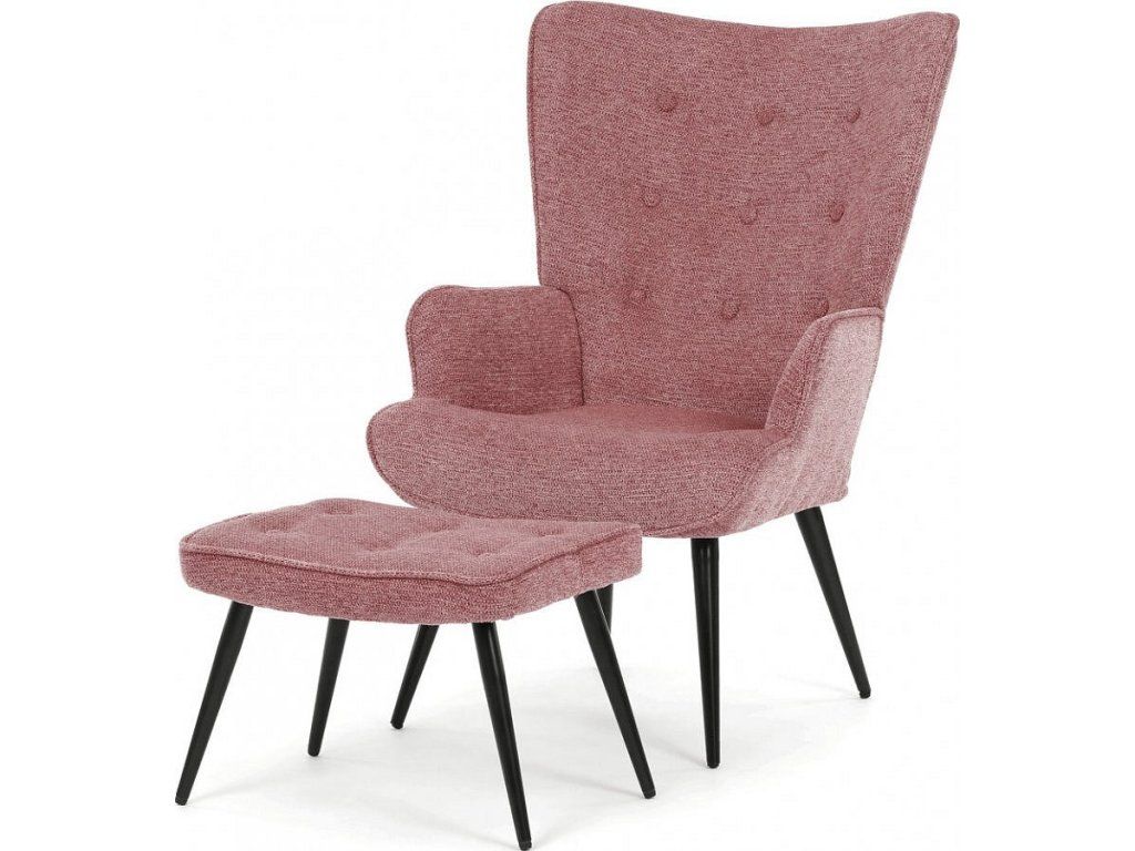 Relaxační křeslo s podnožkou v růžovém odstínu je potažené vodoodpudivou prémiovou látkou, která usnadňuje údržbu a zvyšuje odolnost proti polití. Čalounění je příjemné na dotek a doplněné o decentní prošívání s knoflíkovými detaily na opěradle, které podtrhují jeho stylový vzhled. Pevné černé kovové nohy zajišťují stabilitu a dlouhou životnost. Křeslo disponuje pohodlnými područi a ergonomicky tvarovaným opěradlem, které podporuje relaxaci a odpočinek. Součástí je také samostatný taburet se stejným čalouněním a konstrukcí, který umožňuje pohodlné podložení nohou. Taburet je o šířce 48cm, hloubce 38cm a výšce 36cm.