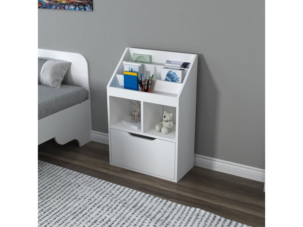 Knihovna je ideální volbou pro obývací pokoj nebo dětský pokoj. Díky svému kompaktnímu rozměru a praktickému designu nabízí dostatek prostoru pro knihy, dekorace nebo hračky. Jednoduchý a moderní vzhled zaručuje, že zapadne do každého interiéru.