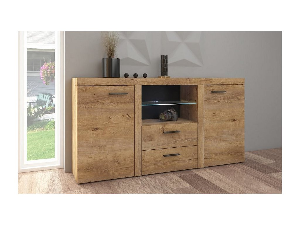 ROBBEN 2D2S - komoda se skleněnou policí Dub lefkas (RUMBADL20) "LP" (K150)