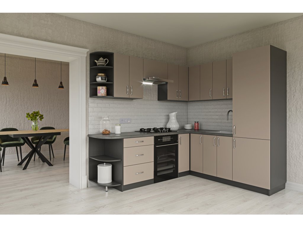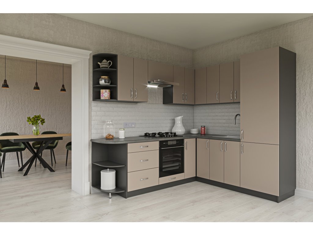 Rohová kuchyňská linka HORLY R2 šedý jíl/grafit