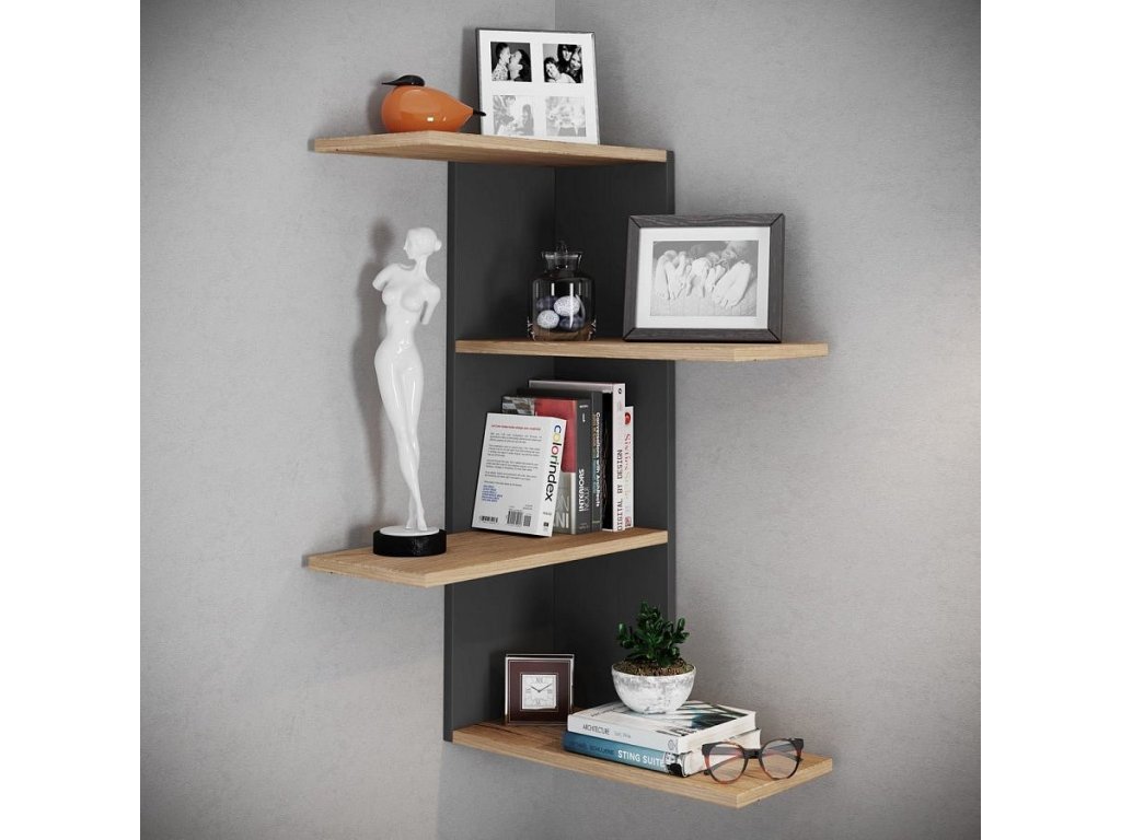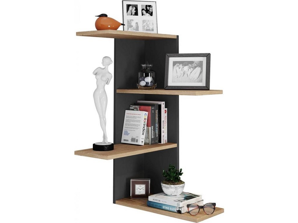 VCM nástěnná police Balos s imitací dřevěné struktury nabízí díky pevným policím spoustu místa pro CD, DVD, knihy, dekorativní předměty a další sběratelské poklady. Moderní a nadčasový design umožňuje umístit polici téměř do každého obytného prostoru.