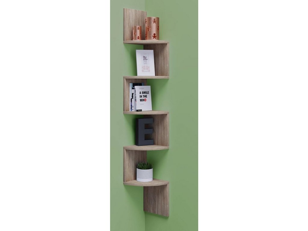 Rohová nebo nástěnná police VCM Mintis nabízí praktické možnosti uskladnění CD, DVD, knih a dalších drobných pokladů. Korpus je vyroben z imitace dřeva a doplněn stabilní zadní stěnou pro pevnost a odolnost.