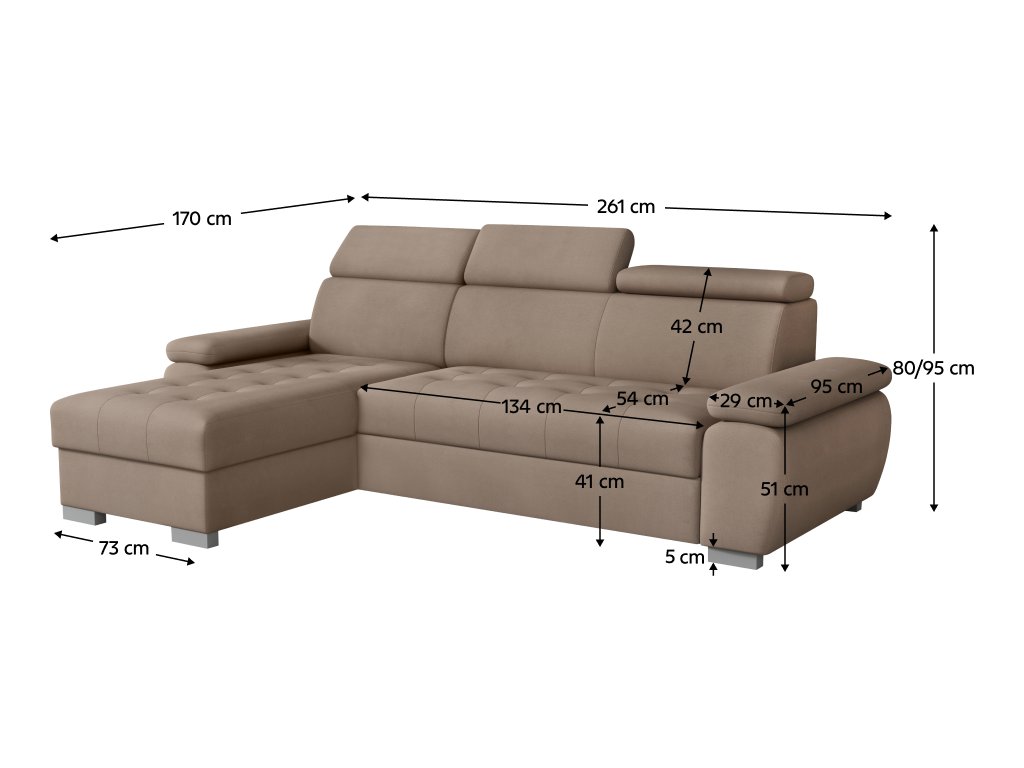 Rozměry (ŠxHxV): 261x170x80/95 cm