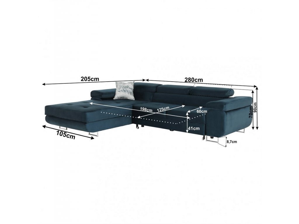 Rohová sedací souprava AMARETA, rozkládací s úložným prostorem, levá, modrá