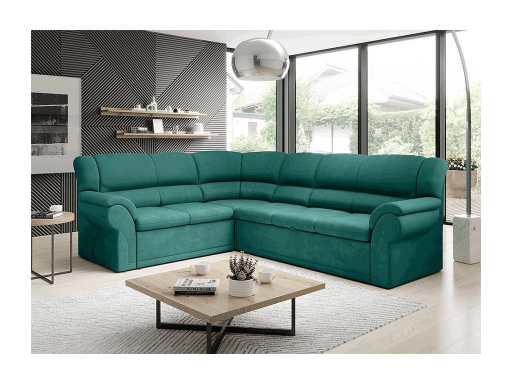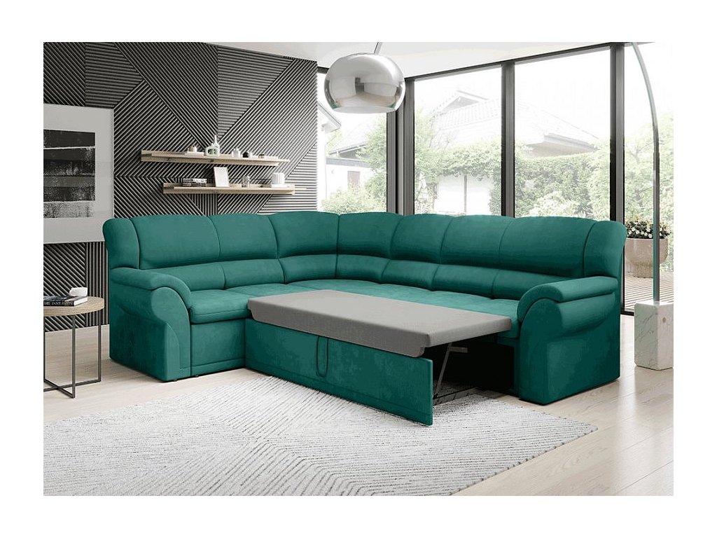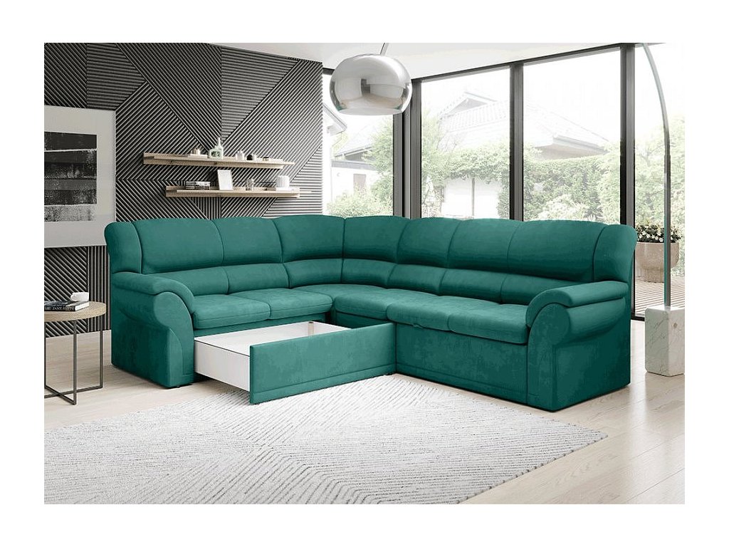 Rohová sedací souprava AMELIA rozkládací s úložným prostorem, levá, smaragdová