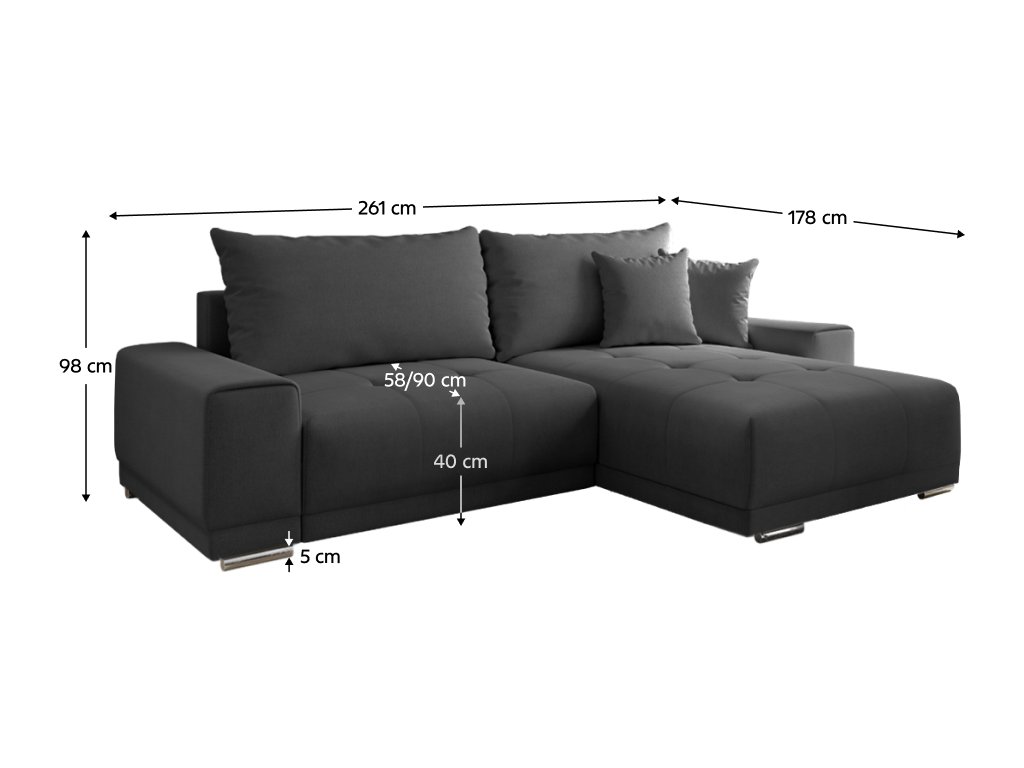 Rohová sedací souprava KEVAN ROH rozkládací s úložným prostorem, tmavě šedá