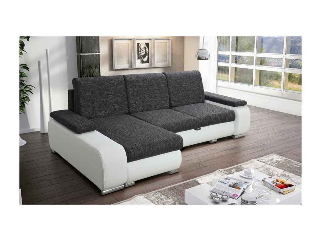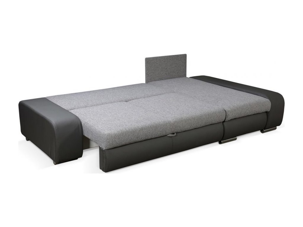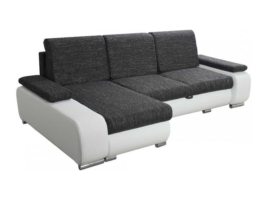 CASA 41013 Rozkládací rohová sedačka. Netradiční a velmi moderní vzhled. Sedačka obsahuje úložný prostor a prostor na příležitostní spaní. Po rozložení je spací plocha 203 x 140 cm. Rozklad je snadný, vysune se matrace do přední části, zadní část se sklopí. Šířka je 255 cm, hloubka je 144 cm, celková výška je 90 cm, výška sedu je 43 cm, šířka područí 26 cm. Pohodlné sezení zaručují bonelové pružiny spolu s PUR pěnou. Sedačka je univerzální, dá se složit na obě strany. Barevné provedení - ekokůže Madryt 120 bílá a žíhaná látka Berlin 02 šedá.