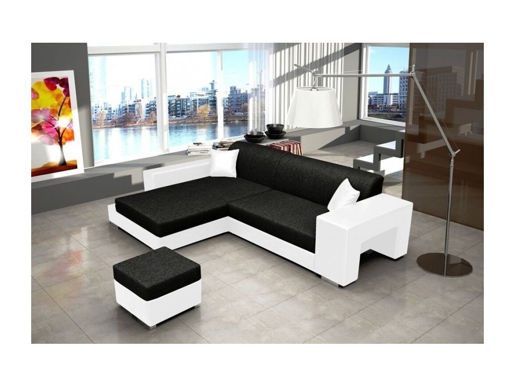 Rohová sedací souprava Oskar, rozkládací s úložným prostorem, levá, černá Inari 100/bílá Soft 17