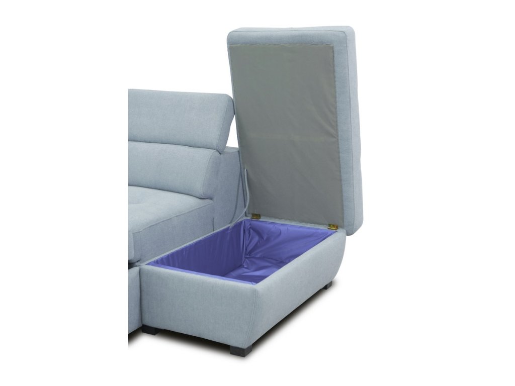 CASA 41038 Elegantní celočalouněná rozkládací rohová sedačka ve tvaru L s regulovatelnými opěrkami. Rozkládá se vysunutím přední části pomocí automatu na pístech ( viz. obrázky ). Spací plocha po rozložení je 188 x 115 cm. Sedačka obsahuje také dva taburety schované pod boční opěrkou a praktický úložný prostor. Díky kombinaci vlnovcových a bonelových pružin s HR PUR pěnou zaručuje sedačka komfortní pohodlí. Hloubka sedu je 55 cm, výška sedu 46 cm. Barevné provedení - látka Metro 37.