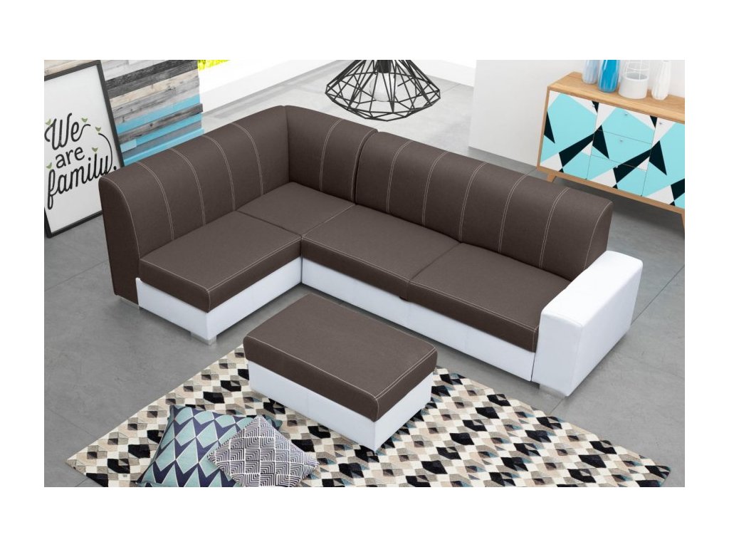 Rohová sedací souprava Rest, rozkládací s úložným prostorem, levá, tmavě hnědá Inari 27/bílá Soft 17