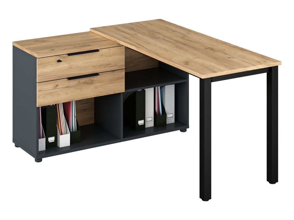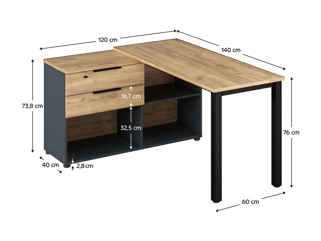 Rohový PC stůl, grafit/dub artisan, KLAUDIUS TYP 8