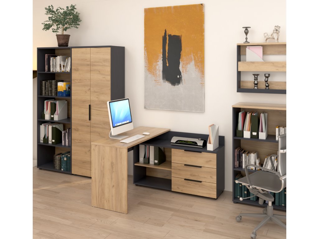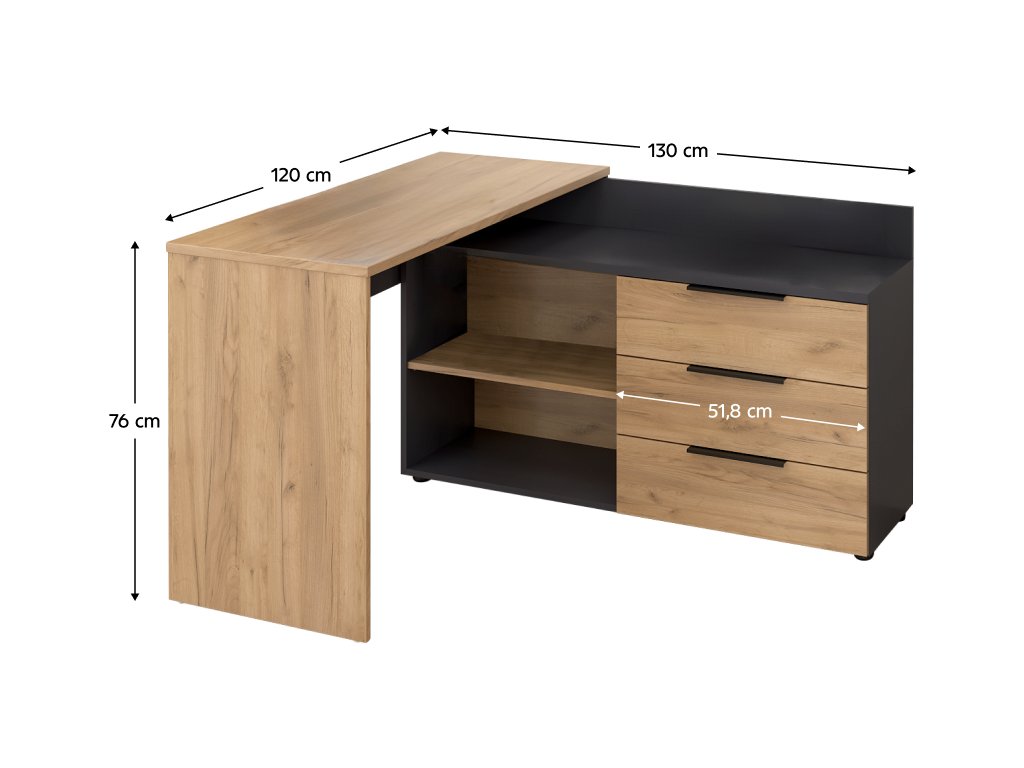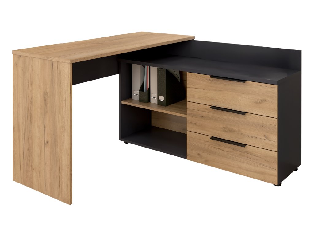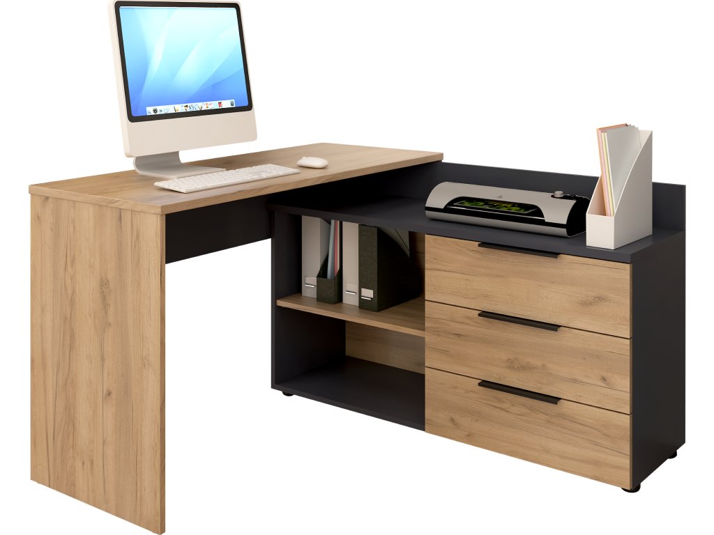 Rohový PC stůl, grafit/dub artisan, KLAUDIUS TYP 9