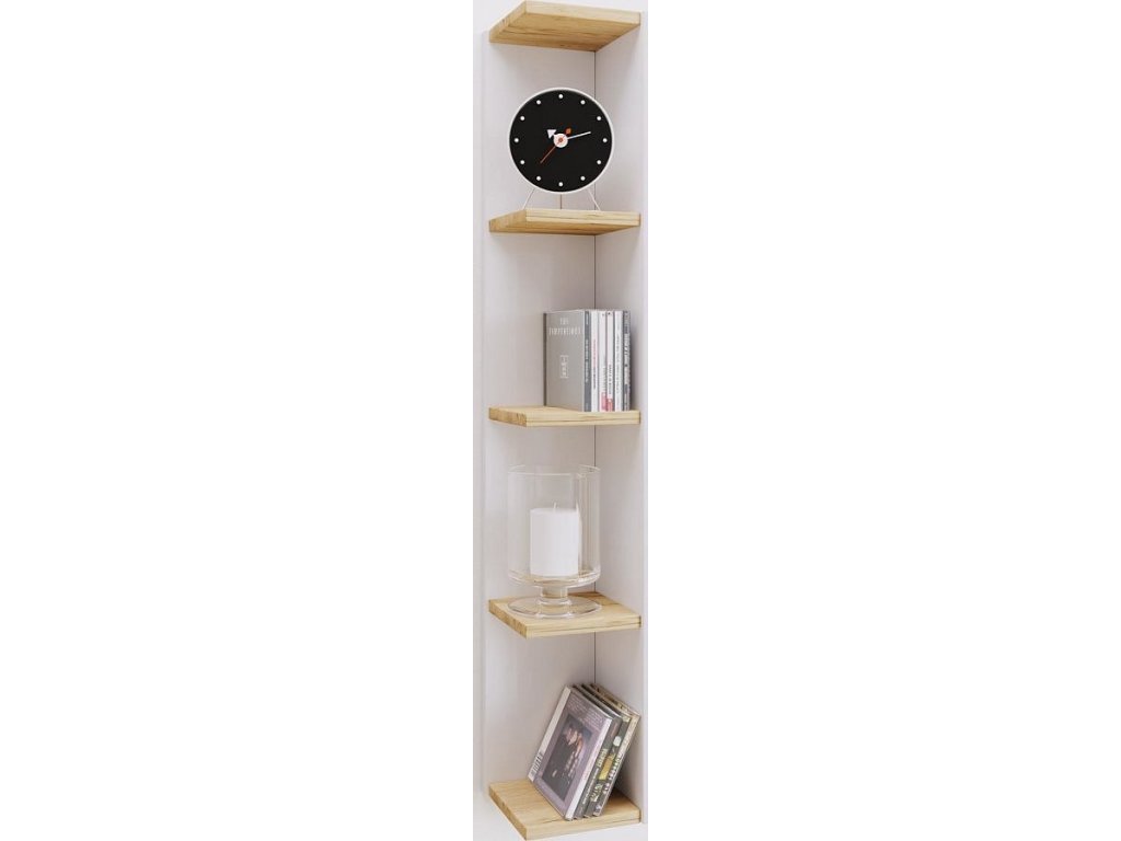 Rohová police VCM „Honsa-Stand Beech“. Pro sběratelské poklady, jako jsou CD, DVD a knihy. Reprodukce textury dřeva. 3 variabilní police se 4 přihrádkami. Dodává se v demontovaném stavu včetně montážního návodu a montážního materiálu. Rozměry výrobku: Výška 97 x šířka 15 x hloubka 17 cm Barva: Buk