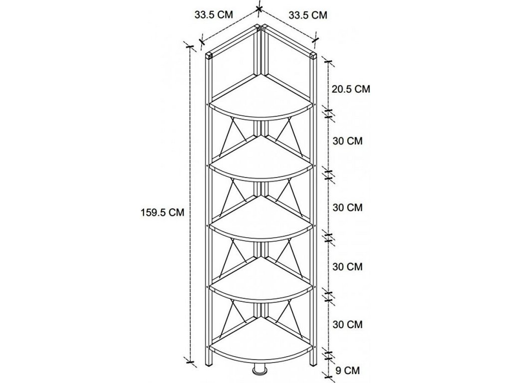 CASA 36040 Kovový rohový regál - knihovna v moderním stylu, police jsou vyrobeny z kvalitní desky LTD v barevném provedení borovice. Tloušťka polic - 18 mm. Konstrukce je natřená elektrostatickou práškovou barvou odolnou vůči rzi a poškrábání. Dodáváme v demontovaném stavu.