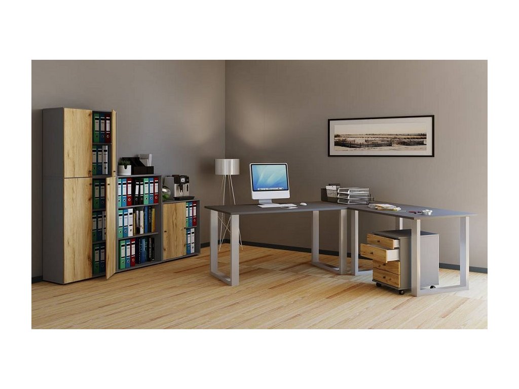 Hlavní vlastnosti: - Nohy stolu ve tvaru U z exkluzivního kovu - Stabilní a vysoce kvalitní zpracování - Replika dřevěné konstrukce - Stůl v různých barvách a rozměrech Rohový stůl VCM "Lona SI" v imitaci dřevěné struktury je stůl se speciálními designovými požadavky. Nábytek lze rychle a snadno sestavit pomocí přiloženého montážního návodu. Důraz na detail dělá z nábytku VCM něco velmi speciálního. K dispozici jsou další kancelářské skříňky a mobilní podstavce ze série "VCM Lona", které ladí se stolem.