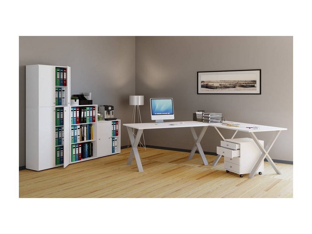 Hlavní vlastnosti: - Nohy stolu ve tvaru X z exkluzivního kovu - Stabilní a vysoce kvalitní zpracování - Replika dřevěné konstrukce - Stůl v různých barvách a rozměrech Rohový stůl VCM "Lona WH" v imitaci dřevěné struktury je stůl se speciálními designovými požadavky. Nábytek lze rychle a snadno sestavit pomocí přiloženého montážního návodu. Důraz na detail dělá z nábytku VCM něco velmi speciálního. K dispozici jsou další kancelářské skříňky a mobilní podstavce ze série "VCM Lona", které ladí se stolem.