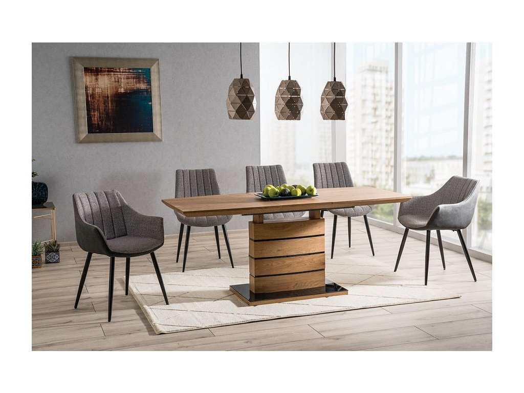 Rozkládací jídelní stůl LEONARDO 140x80, dub/černá
