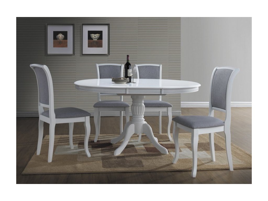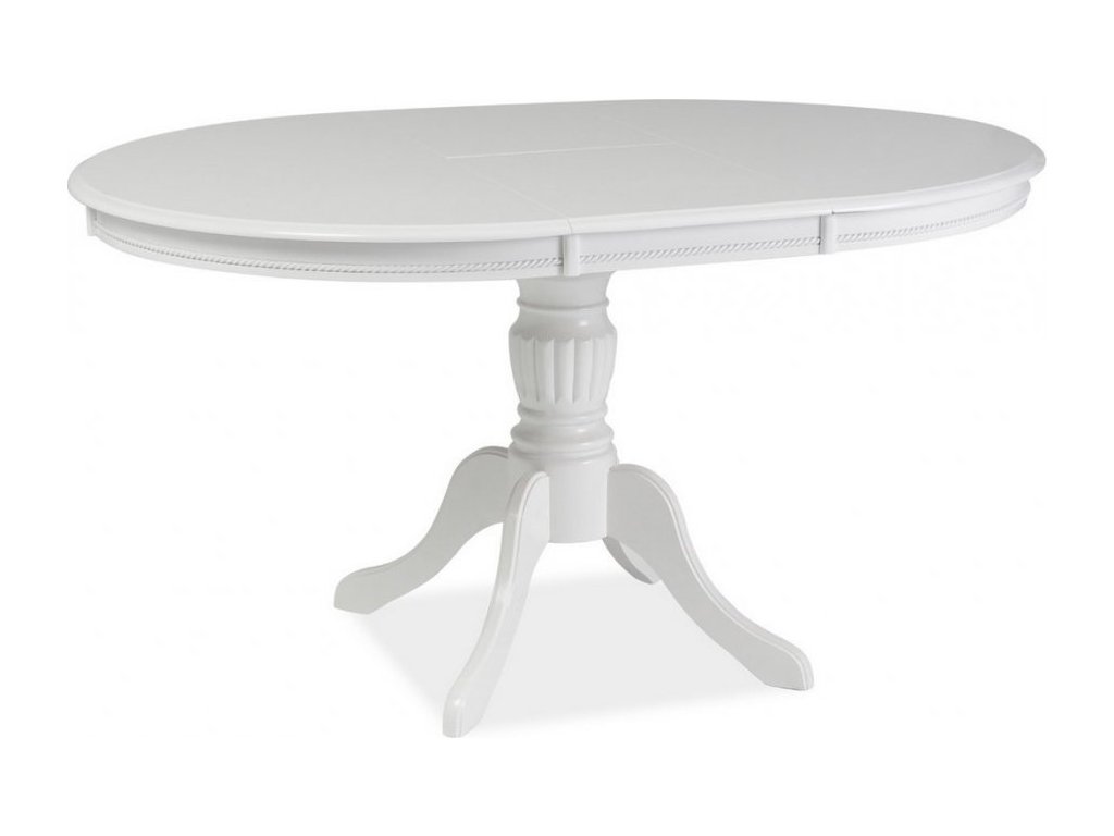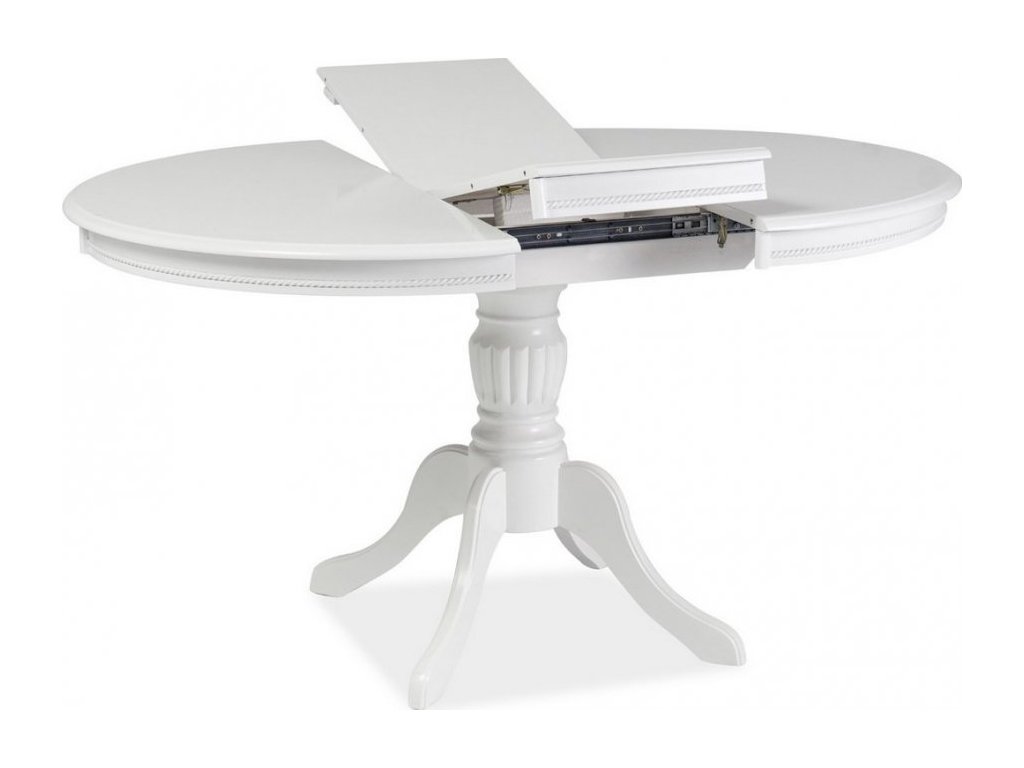 CASA 11629 Elegantní jídelní stůl v duchu provance. Zajímavý vzhled stolu vyzdvihují jemné tvary a dokonalé detaily. Tento kulatý stůl je vyroben z přírodního dřeva, deska je z kvalitní MDF v bílé barvě. Plocha před rozložením je 106 x 106 cm, po rozložení 106 x 141 cm. Výška stolu je 75 cm. Stůl je určený pro 4 až 6 osob. K tomuto stolu doporučujeme židle v naší nabídce.