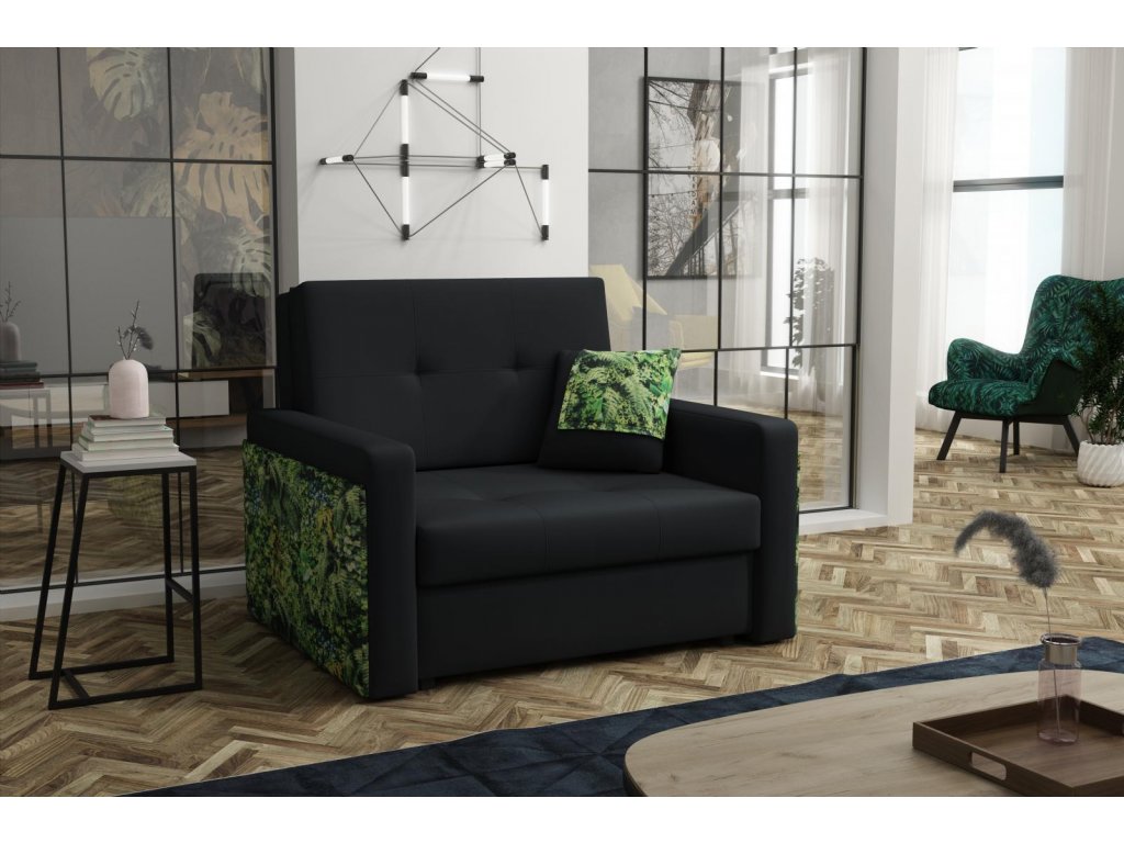 Rozkládací křeslo Vivian Mel I s úložným prostorem, černá manila 18/jungle
