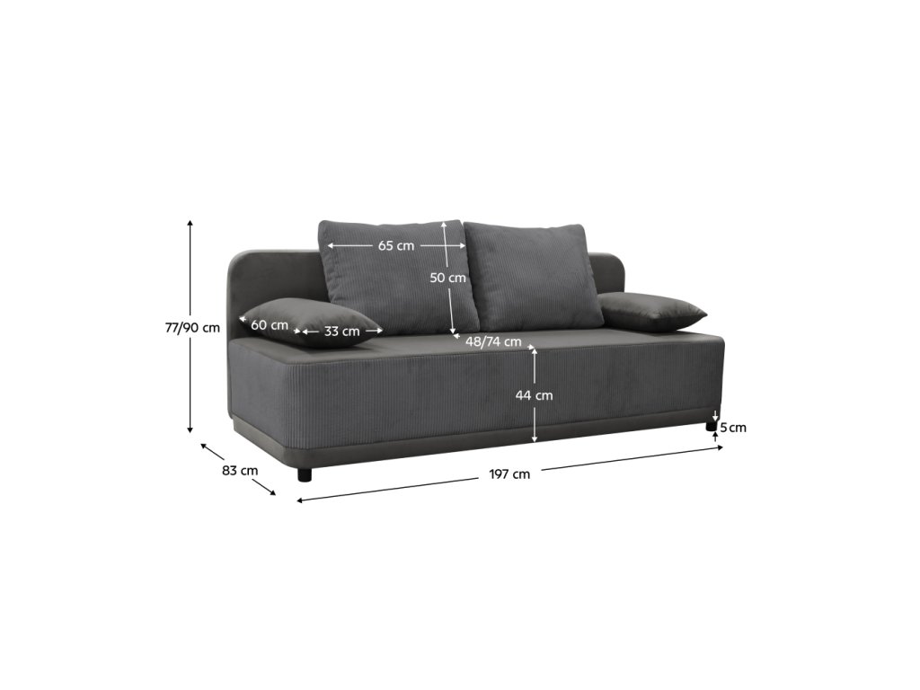 Rozměry (ŠxHxV): 197x83x77/90 cm