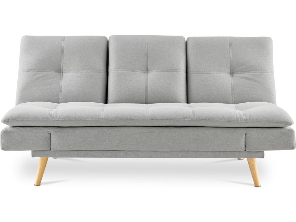 Rozkládací pohovka click-clack, 3místná, držák nápojů, potah světle šedá látka, nohy masiv buk ASB-4720 SIL2