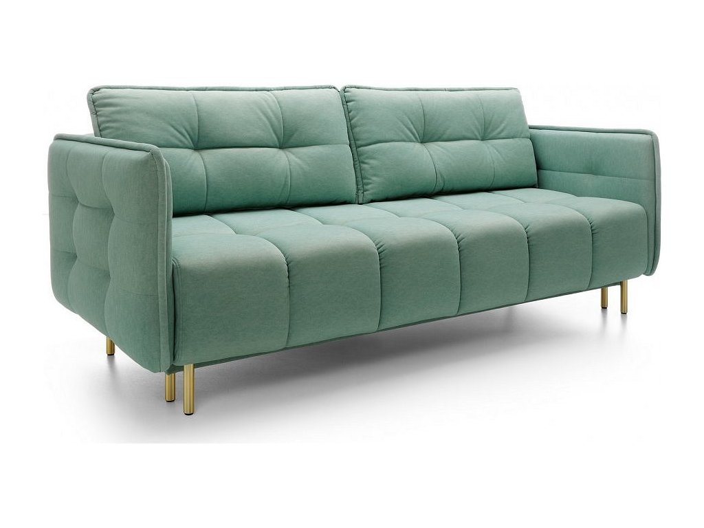 CASA 17007 Praktická celočalouněná pohovka v elegantním provedení. Pohovka obsahuje úložný prostor a prostor na příležitostní spaní. Po rozložení je spací plocha 200 x 140 cm. Rozklad je snadný vysunutím sedací části a sklopením zadní opěrné části. Pohodlné sezení zaručují vlnovcové pružiny spolu s vysoceelastickou PUR pěnou, opěrné polštáře jsou na volno. Nožky jsou v barvě zlaté. Barevné provedení pohovky je látka Castek 34 - zelená světlá. (viz potah látky na menším obrázku)
