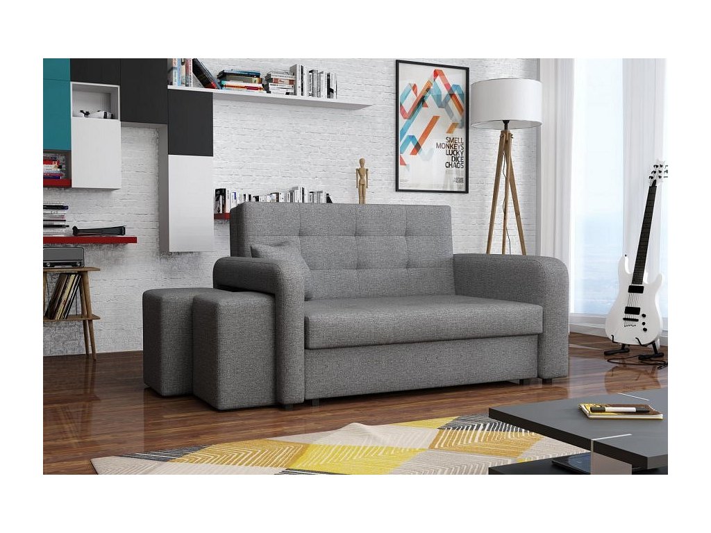 Rozkládací pohovka Vivian Home II s úložným prostorem a taburetkami, šedá Malmo 90