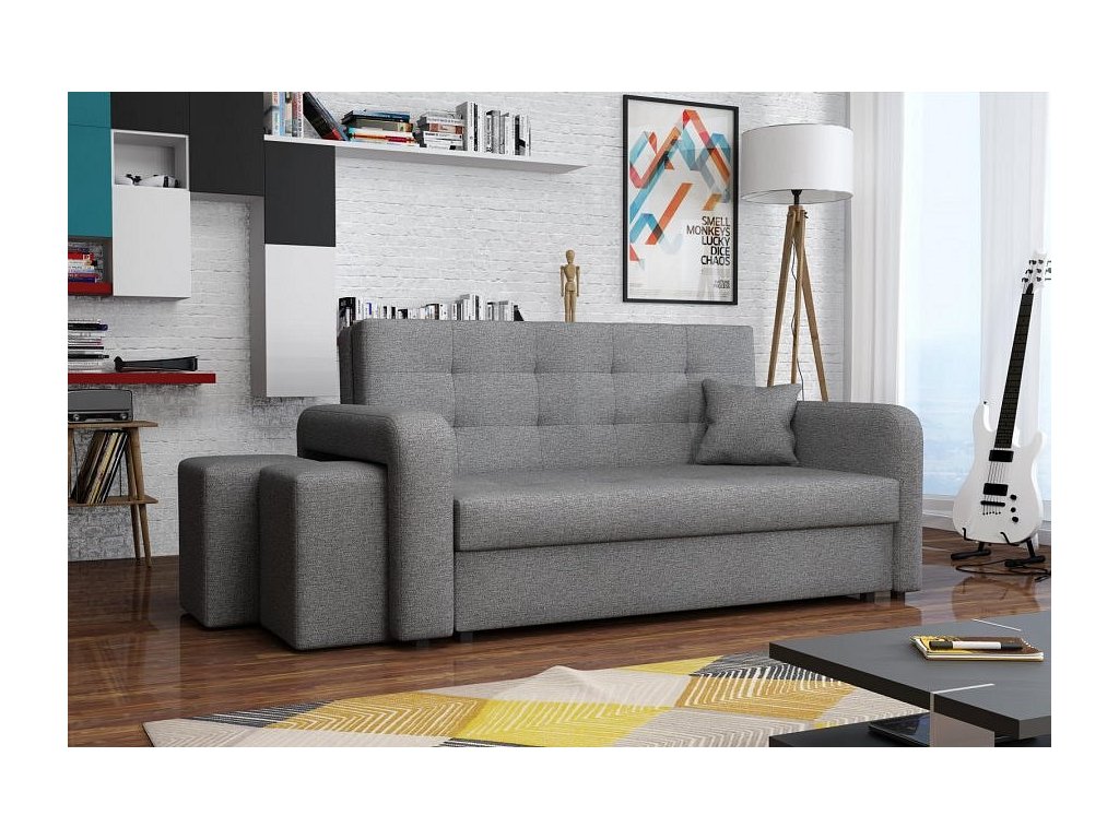 Rozkládací pohovka Vivian Home III s úložným prostorem a taburetkami, Malmo šedá