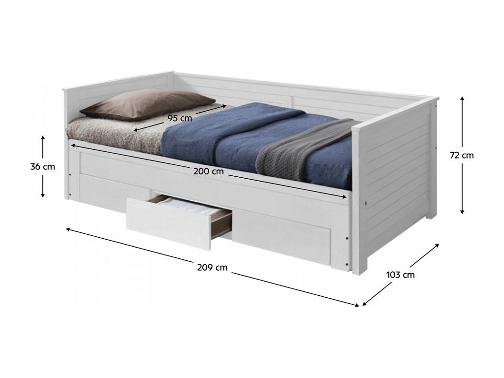 Rozměry jednolůžka (ŠxHxV): 90x200 cm