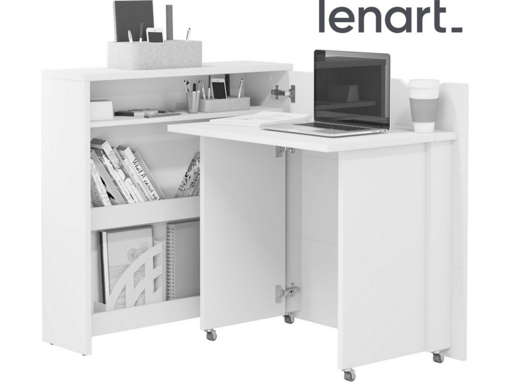 CASA 73029 Rozkládací psací stůl v moderním a jednoduchém designu snadno složíte do komody a ušetříte tím spousty místa. Díky praktickým policím máte vše po ruce. Stůl je k dispozici ve dvou variantách - pravé nebo levé. Vyberte si ten, který lépe vyhovuje Vašim požadavkům. Kolečka umístěná pod bočními podpěrami usnadňují otevírání a zavírání stolu. Stůl je vyroben z lamina tloušťky 16mm, pracovní deska stolu z lamina tloušťky 22 mm. Maximální nosnost police je 5 kg, pracovní desky 3 kg. Šířka stolu po rozložení je 136 cm. Dodáváme v demontovaném stavu.