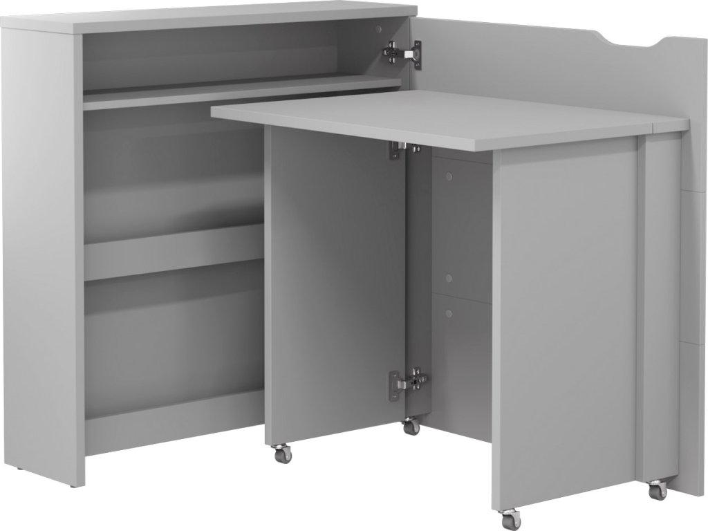 CASA 73029 Rozkládací psací stůl v moderním a jednoduchém designu snadno složíte do komody a ušetříte tím spousty místa. Díky praktickým policím máte vše po ruce. Stůl je k dispozici ve dvou variantách - pravé nebo levé. Vyberte si ten, který lépe vyhovuje Vašim požadavkům. Kolečka umístěná pod bočními podpěrami usnadňují otevírání a zavírání stolu. Stůl je vyroben z lamina tloušťky 16mm, pracovní deska stolu z lamina tloušťky 22 mm. Maximální nosnost police je 5 kg, pracovní desky 3 kg. Šířka stolu po rozložení je 136 cm. Dodáváme v demontovaném stavu.