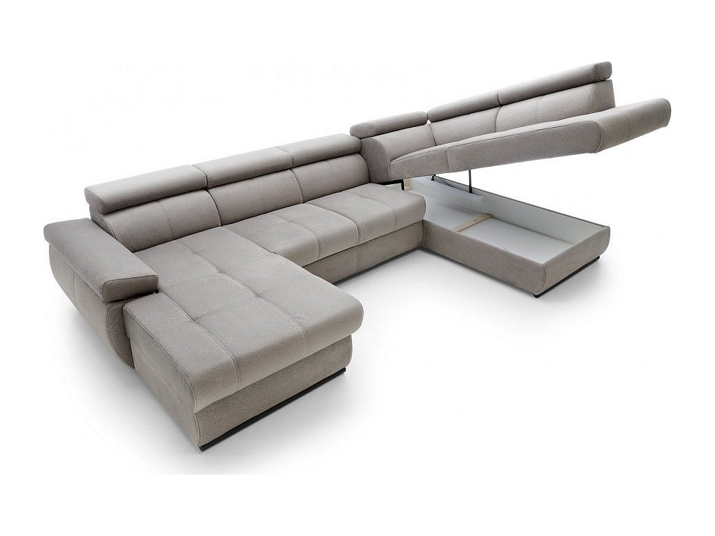 CASA 17016 Praktická celočalouněná rohová sedačka tvaru U s dekoračním prošíváním a regulovatelnými opěrkami hlavy a loktů. Sedačka obsahuje 2 úložné prostory a prostor na příležitostní spaní. Po rozložení je spací plocha 274 x 130 cm. Hloubka kratšího otomanu je 170 cm. Rozklad je snadný vysunutím zásuvky pod sedací částí a vytažením ložné plochy nahoru. Pohodlné sezení zaručují vlnovcové a profilované pružiny spolu s vysoceelastickou PUR pěnou. Barevné provedení sedačky je hnědá světlá, umístění rohu je vpravo. (viz potah látky na menším obrázku)