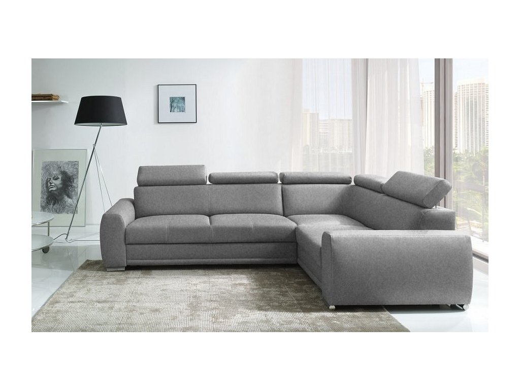 CASA 17028 Praktická celočalouněná rohová sedačka s rohem napravo. Netradiční a velmi moderní vzhled. Sedačka obsahuje úložný prostor a prostor na příležitostní spaní. Po rozložení je spací plocha 205 x 130 cm. Rozklad je snadný pomocí automatu. Pohodlné sezení zaručují vlnovcové a profilované pružiny spolu s visoceelastickou PUR pěnou. Nožky jsou kovové. Velkou výhodou sedačky jsou 5 polohovatelných opěrek na hlavu pro větší pohodlí. Po zvednutí zádové opěrky je výška sedací soupravy 90 cm. Barevné provedení - látka Element 23. Můžete si vybrat výběr rohu v naší nabídce.