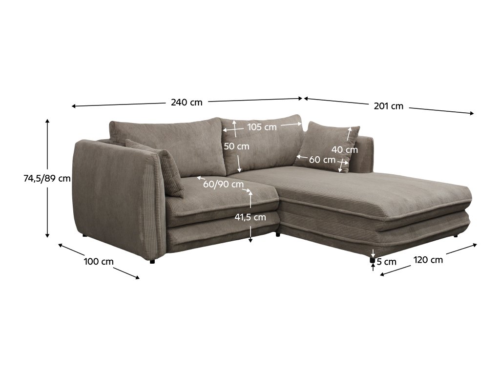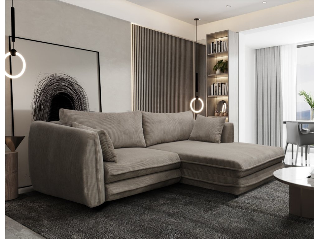 Rozkládací sedací souprava, béžovošedá Taupe, pravá, BUSTER ROH