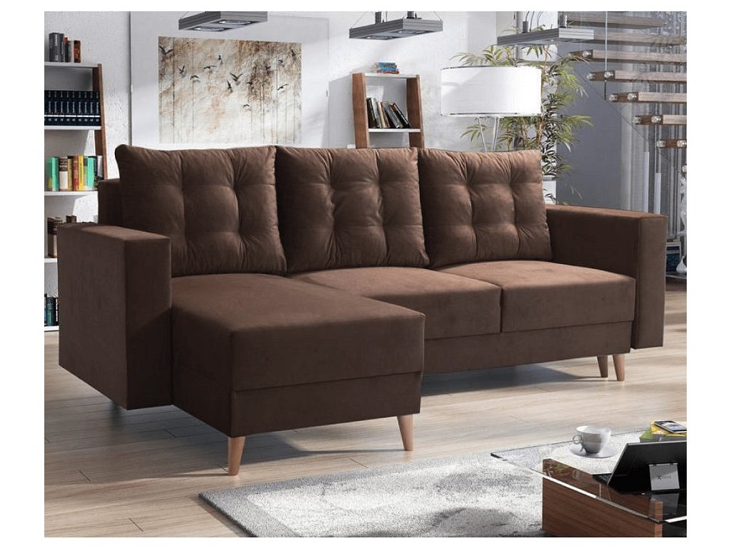 Rozkládací sedací souprava, hnědá, levá, BLEKY ROH
