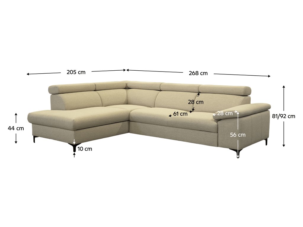 Rozměry (ŠxHxV): 268x205x81/92 cm