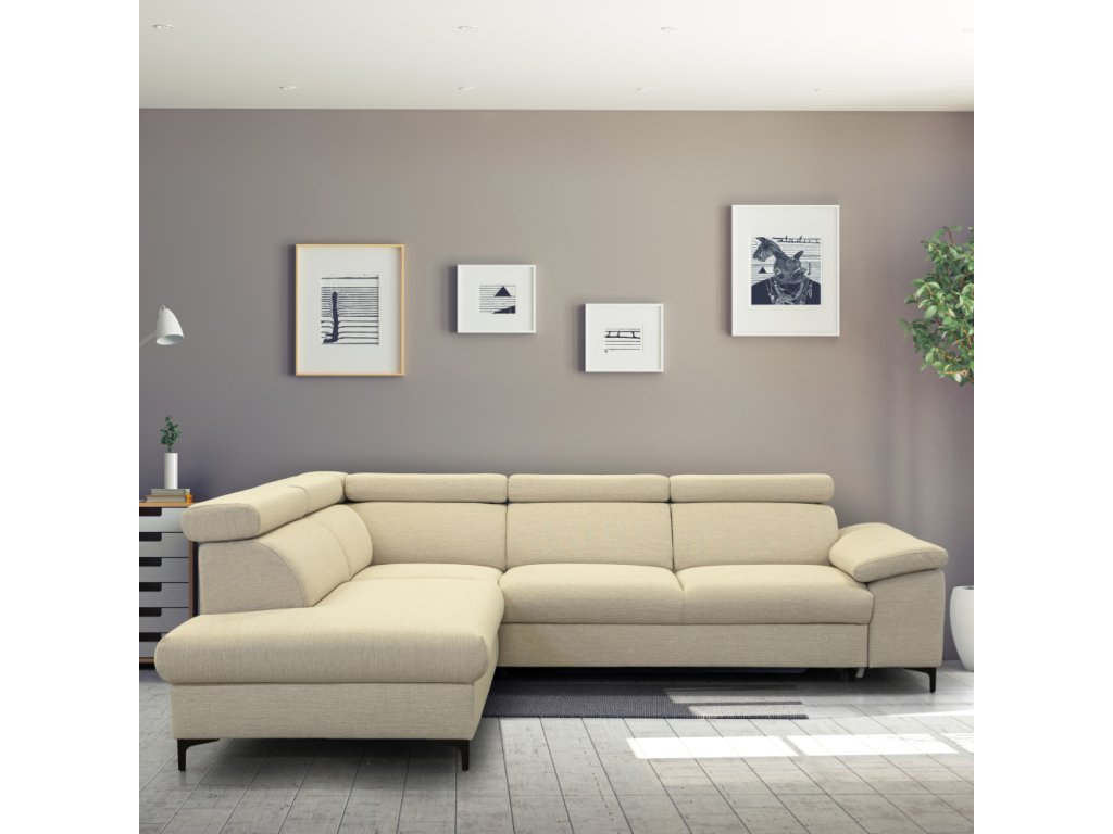 Rozkládací sedací souprava, krémová, levá, ZACHARY ROH