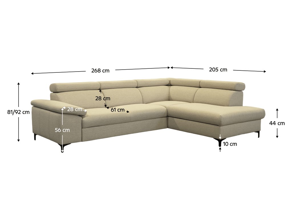 Rozměry (ŠxHxV): 268x205x81/92 cm