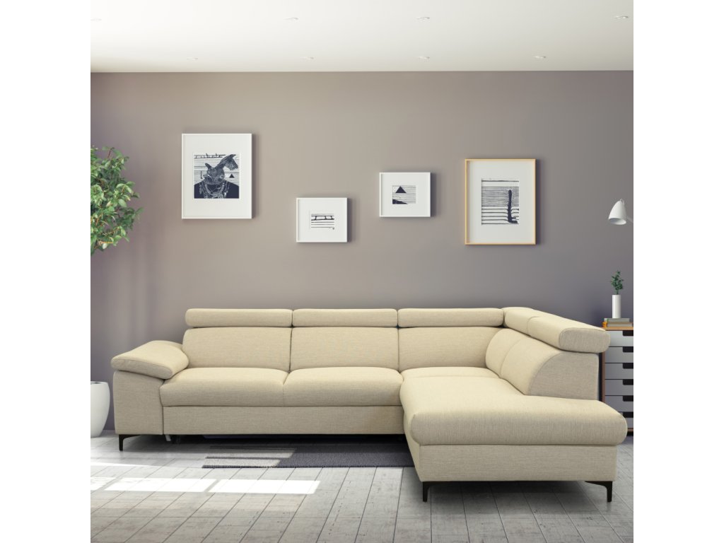 Rozkládací sedací souprava, krémová, pravá, ZACHARY ROH