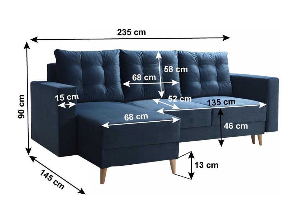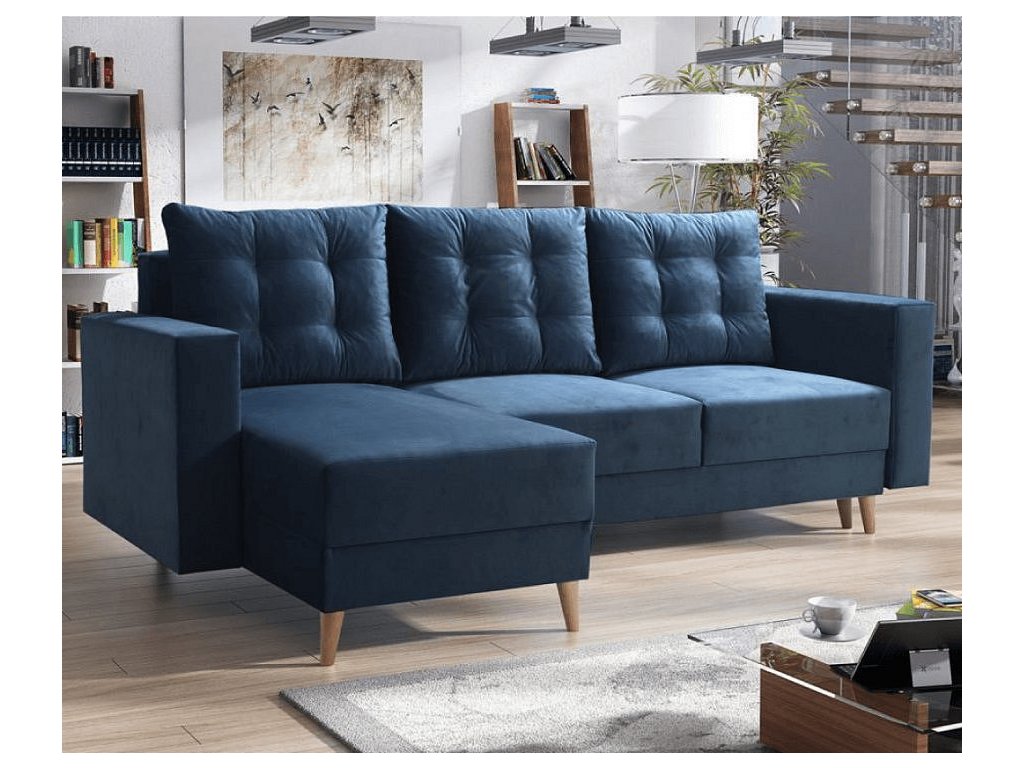 Rozkládací sedací souprava, modrá, levá, BLEKY ROH