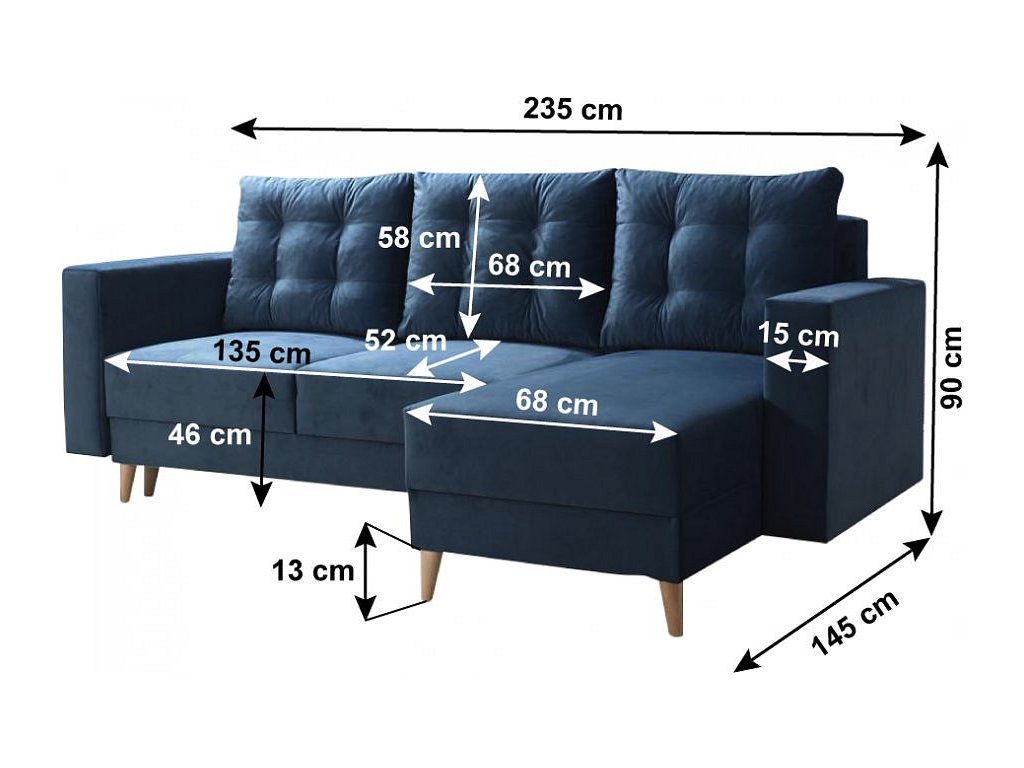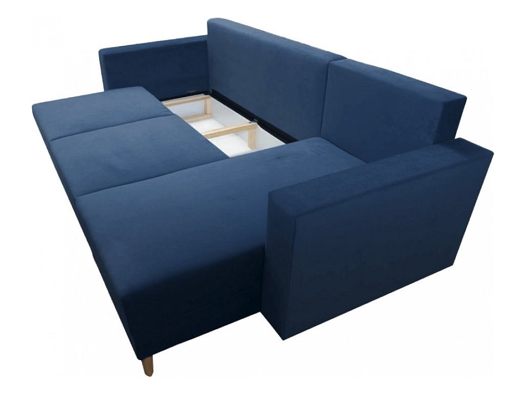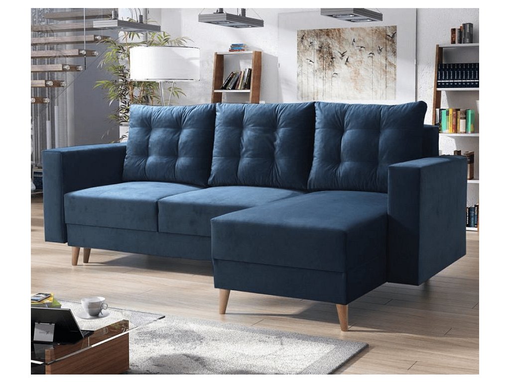 Rozkládací sedací souprava, modrá, pravá, BLEKY ROH